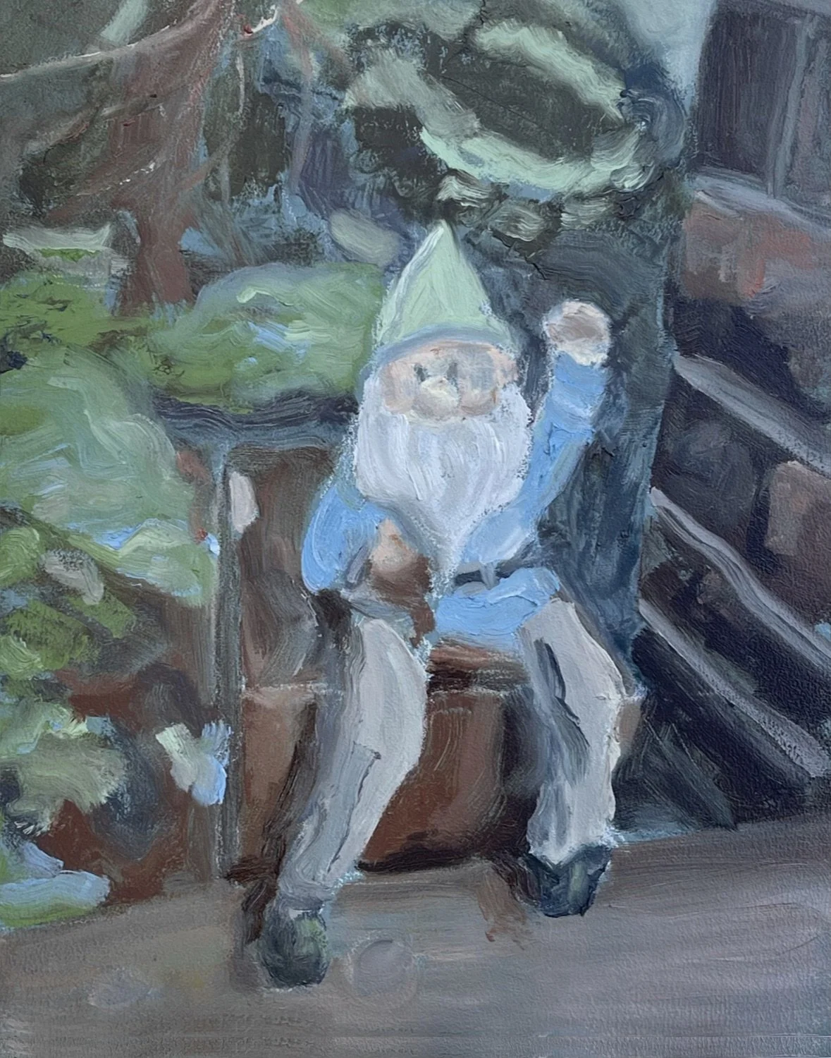 The Friendly Gnomad, Katie Goodwin, 2025. Oil on board, 30×24cm (detail)